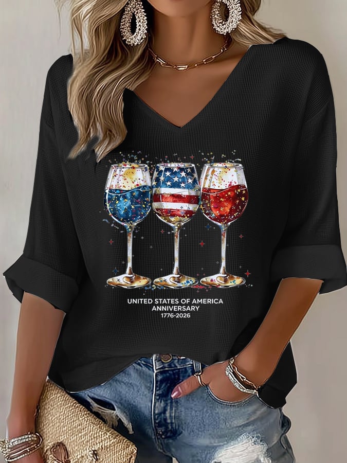 Women's Casual 250th Anniversary Printed Waffle Top