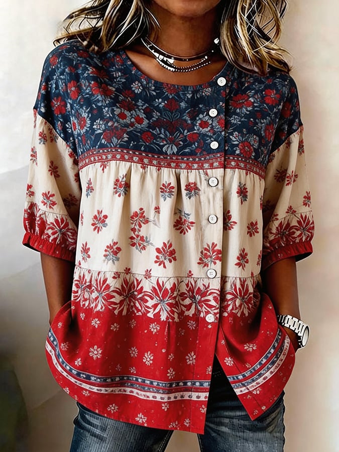 Women's Cotton-Linen Top With 250th Anniversary Botanical Floral Digital Print