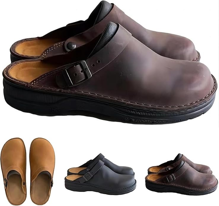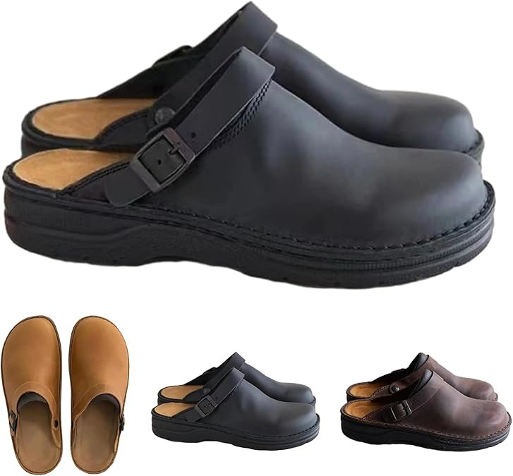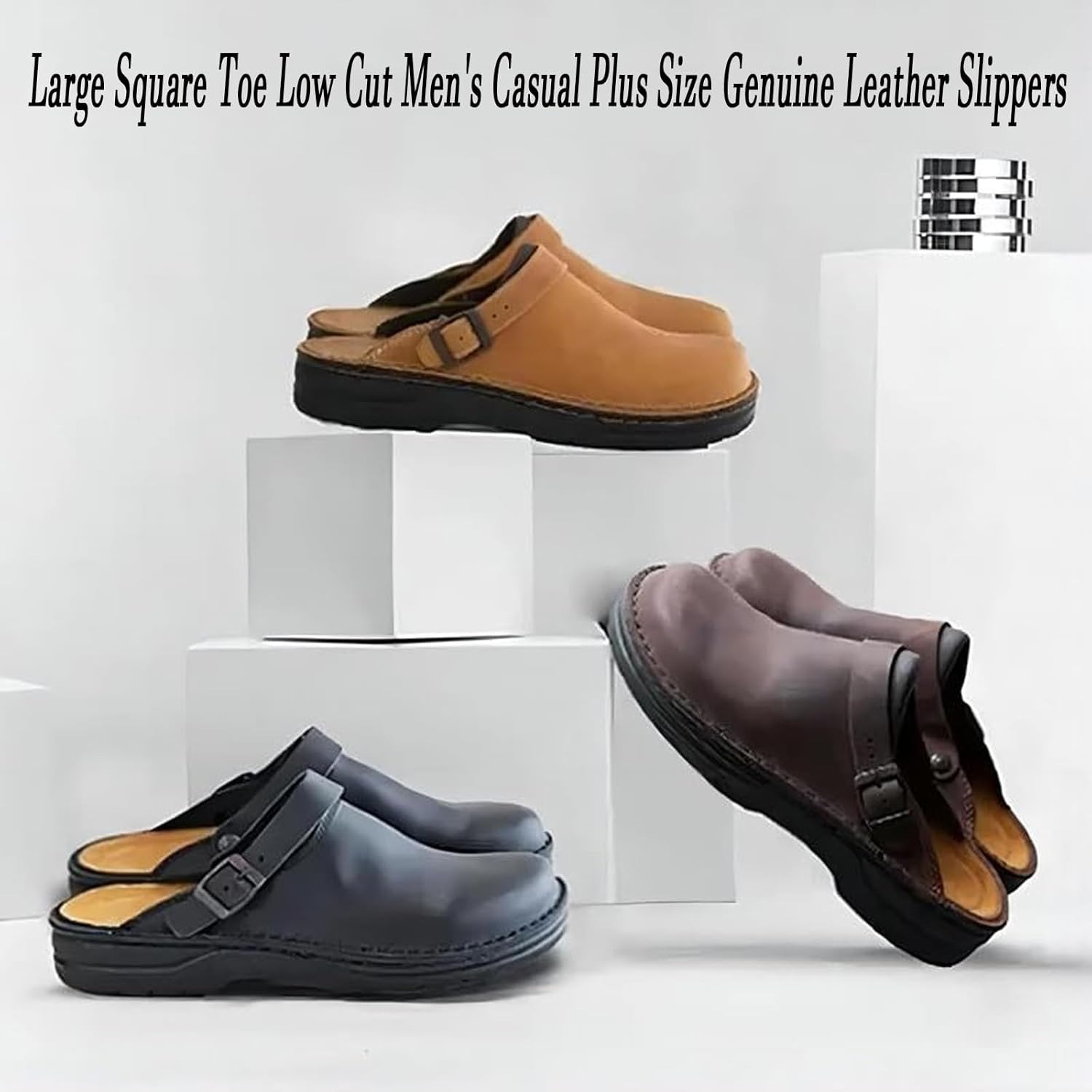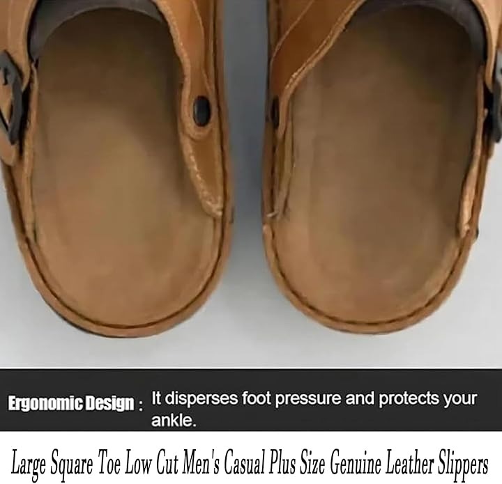 Large Square Toe Low Cut Men's Casual Plus Size Genuine Leather Slipper